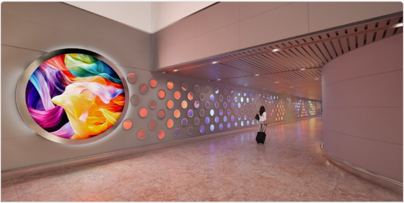 Know MoreThe City Dreams invites you to explore dreams of the future Mumbai. The installation features a welcome screen and a double-sided screen at the arrival area, as well as illuminated rings positioned along the connecting hall showcasing the city’s future as you would dream- where Mumbai is not just a place, but a vision taking shape, as dreams fulfil.